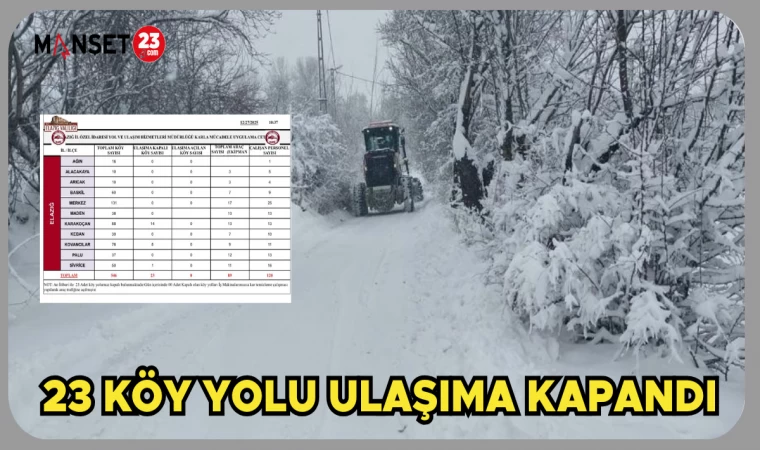 23 KÖY YOLU ULAŞIMA KAPANDI