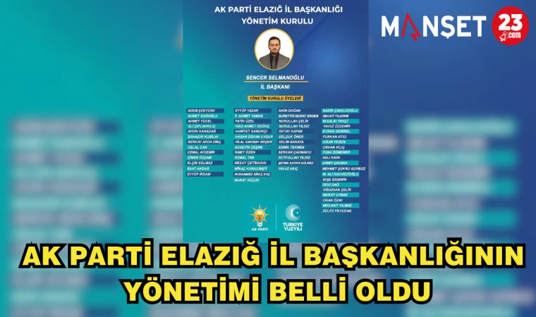 AK Parti Elazığ İl Başkanı Sencer Selmanoğlu'nun yönetimi belli oldu.