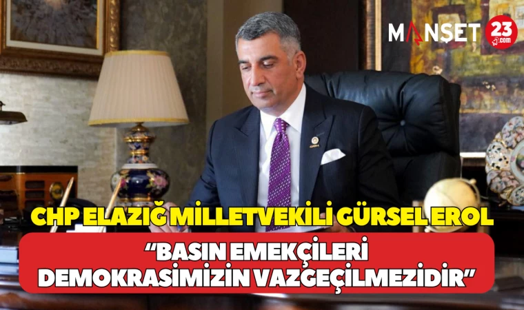 CHP Elazığ Milletvekili Gürsel Erol, gazeteciliğin emek, fedakârlık ve özveri gerektiren onurlu bir meslek olduğunu belirterek, basın mensuplarının gece-gündüz, bayram seyran demeden halkın doğru ve tarafsız bilgiye ulaşması için görev yaptığını ifade etti.
