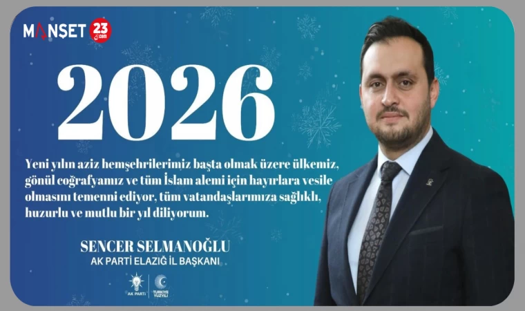 AK Parti Elazığ İl Başkanı İbrahim Sencer Selmanoğlu, yeni yıl dolayısıyla değerlendirmelerde bulundu. Selmanoğlu, 2026 yılının Elazığ başta olmak üzere ülkeye ve tüm dünyaya sağlık, huzur ve esenlik getirmesini diledi.
