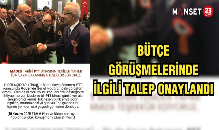 Açıkkapı açıklamasında, “Maden İlçemizin tarihi PTT binasıyla ilgili talebimizi hem Bakanlık nezdinde hem de Plan ve Bütçe Komisyonu’nda dile getirdik. İlçemizin tarihi kimliğini ve sosyal hayatını canlandıracak bu önemli yatırım, bütçe sürecinde karşılık bulmuştur” dedi.