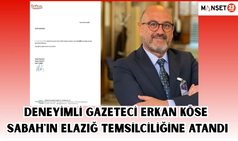 Elazığ medya camiasının deneyimli ismi gazeteci Erkan Köse, Sabah Gazetesi'nin Elazığ temsilciliği görevine yeniden getirildi.