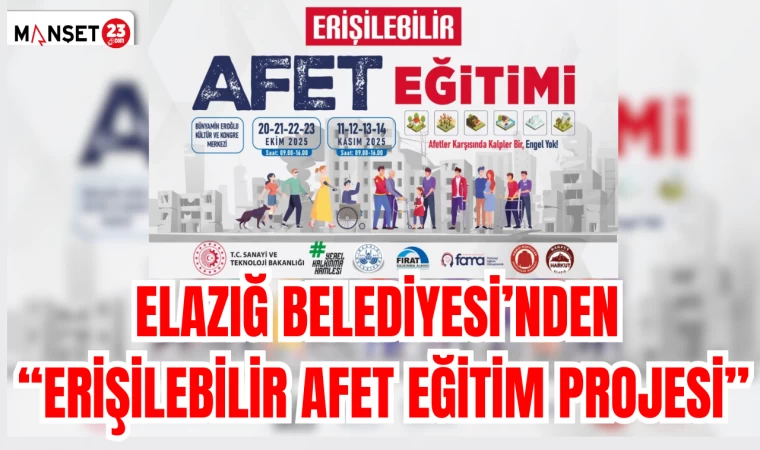 Elazığ Belediyesi tarafından hayata geçirilecek olan “Erişilebilir Afet Eğitimi Projesi” 20 Ekim Pazartesi günü başlayacak ve 8 gün sürecek. Bu proje ile Türkiye’de ilk kez, erişilebilirlik ve hassas gruplar konusunda özel eğitim almış Elazığ Belediyesi personelinin afet sonrasında birebir müdahale süreçlerinde aktif rol alması sağlanacak.