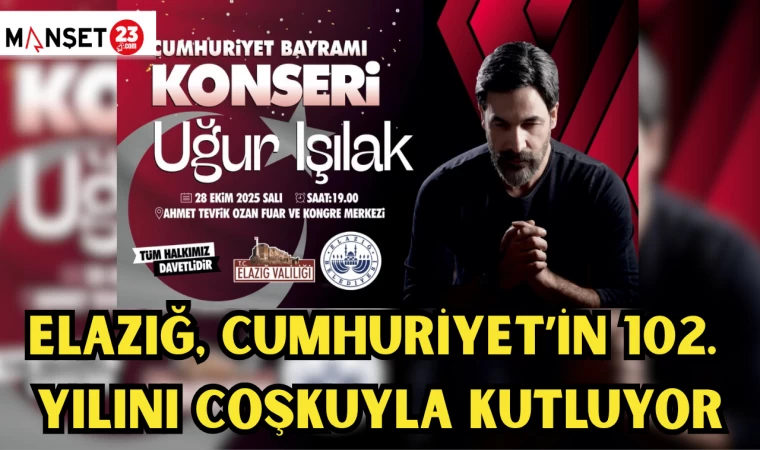 Elazığ Belediyesi Basın-Yayın ve Halkla İlişkiler Müdürlüğü’nden yapılan açıklamada, “Cumhuriyetimizin kuruluşunun 102. yıl dönümünü birlik ve beraberlik içerisinde, büyük bir gururla kutluyoruz. Cumhuriyet coşkusunu hep birlikte paylaşacağımız ve güçlü yorumcu Uğur Işılak’ın sahne alacağı Cumhuriyet Bayramı Konser Programı'na tüm hemşehrilerimiz davetlidir.” denildi.