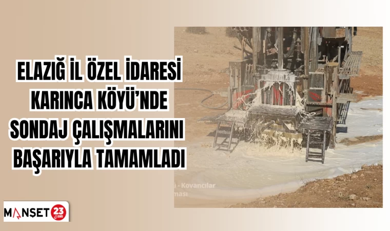 Elazığ İl Özel İdaresi'nin 2025 yatırım programında yer alan, Kovancılar ilçesi Karınca Köyü'ndeki sondaj çalışmaları başarıyla tamamlandı.