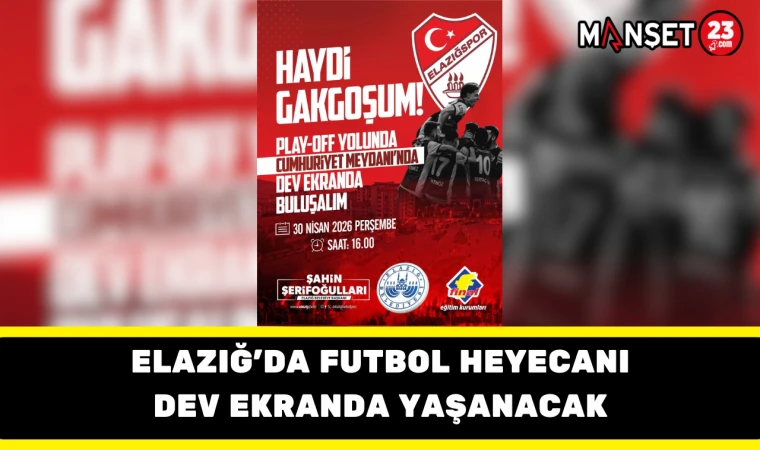 Elazığspor’un deplasmanda Adana 01 FK ile oynayacağı kritik karşılaşma için Elazığ’da dev ekran kurulacak. Nesine 2. Lig Play-Off 1. Tur ilk maçında bordo-beyazlı ekibin mücadelesi, Cumhuriyet Meydanı’nda taraftarlarla birlikte izlenecek.