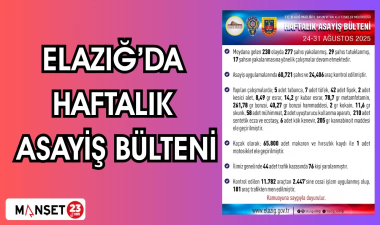 ELAZIĞ'DA HAFTALIK ASAYİŞ BÜLTENİ