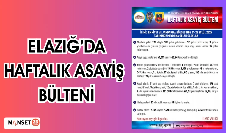 ELAZIĞ'DA HAFTALIK ASAYİŞ BÜLTENİ