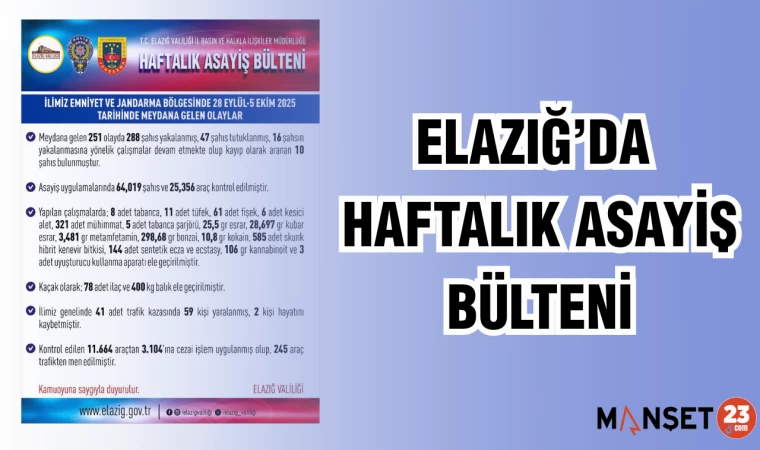 ELAZIĞ'DA HAFTALIK ASAYİŞ BÜLTENİ