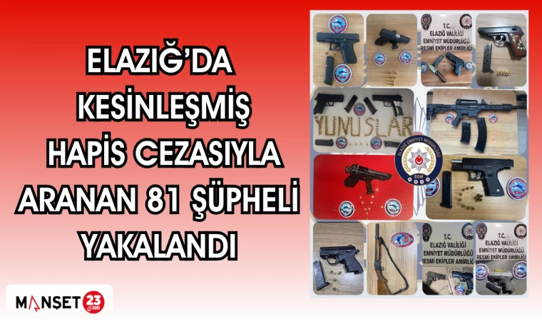 Elazığ’da polis ekiplerinin yaptığı çalışmada son 1 ay içerisinde kesinleşmiş hapis cezasıyla aranan 81 şüpheli yakalandı.