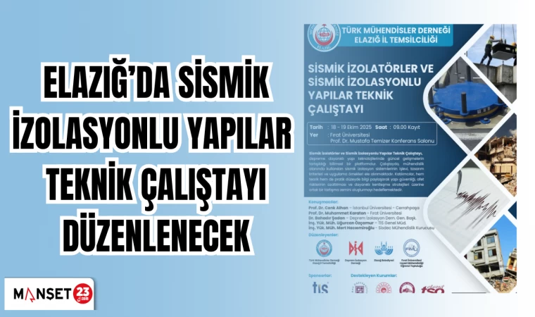 Elazığ’da sismik izolatörler ve sismik izolasyonlu yapılar teknik çalıştayı düzenlenecek. Çalıştayda, deprem güvenliği, yapı teknolojileri ve yerli izolatör üretimi konuları üzerinde durulacak.