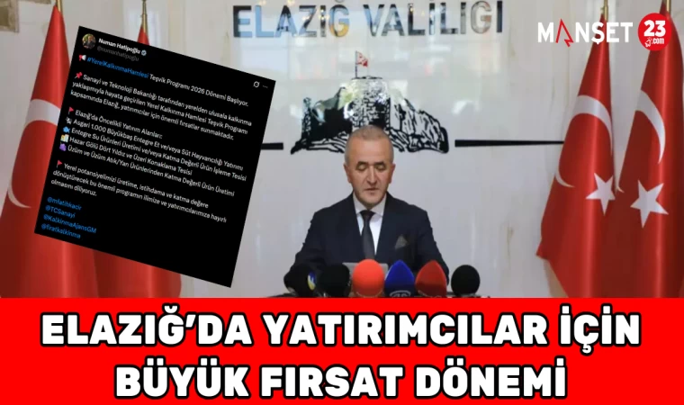 Vali Hatipoğlu yaptığı paylaşımda şu ifadelere yer verdi: “#YerelKalkınmaHamlesi Teşvik Programı 2026 Dönemi Başlıyor. Sanayi ve Teknoloji Bakanlığı tarafından yerelden ulusala kalkınma yaklaşımıyla hayata geçirilen Yerel Kalkınma Hamlesi Teşvik Programı kapsamında Elazığ, yatırımcılar için önemli fırsatlar sunmaktadır.