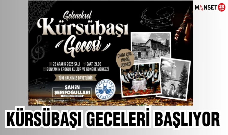 Elazığ Belediyesi; şehrin kültürel, sanatsal, sosyal hayatını canlı tutma ve kültürel değerleri yaşatma amacıyla Elazığ’da faaliyet gösteren musiki dernekleriyle ortak bir projeye imza atıyor. Bu kapsamda musiki dernekleri tarafından dönüşümlü olarak her ayın 23’ünde Kürsübaşı Gecesi programları düzenlenecek.