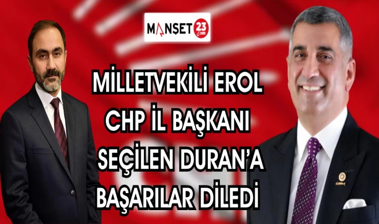 MİLLETVEKİLİ EROL CHP İL BAŞKANI SEÇİLEN DURAN'A BAŞARILAR DİLEDİ