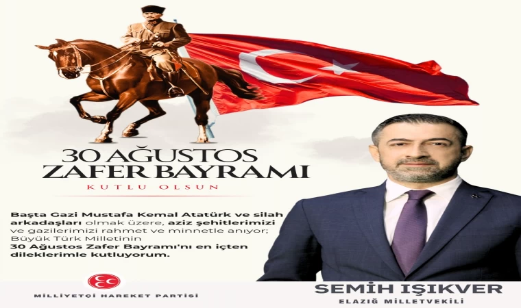 Türk milletinin, tarihin her döneminde bağımsızlık uğruna canını feda etmekten geri durmadığını belirten Milliyetçi Hareket Partisi Elazığ Milletvekili Semih IŞIKVER, 30 Ağustos Zafer Bayramı vesilesiyle yayınladığı kutlama mesajında:
