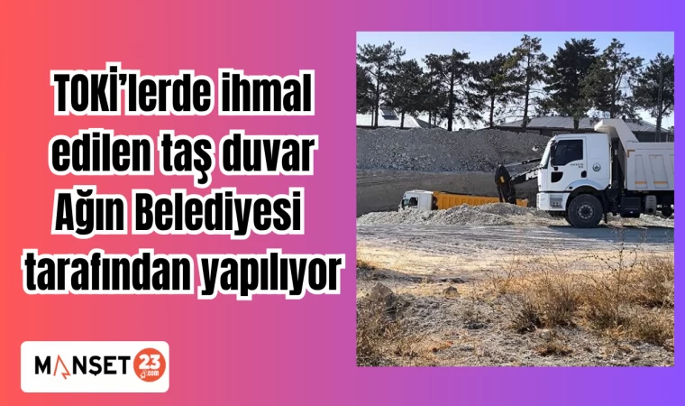 TOKİ’lerde ihmal edilen taş duvar, Ağın Belediyesi tarafından yapılıyor