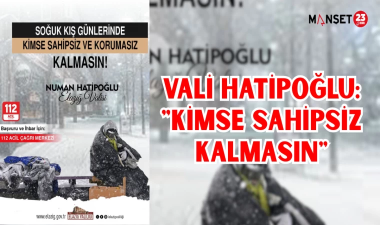 Elazığ Valisi Numan Hatipoğlu sosyal medya hesabından bir paylaşım yaparak soğuk hava şartlarında dışarıda barınacak yeri olmayan veya zor durumda kalan vatandaşlar için çağrıda bulundu. Vatandaşlar barınacak yeri olmayan bireyleri fark ettiklerinde 112 Acil Çağrı Merkezi’ni arayarak yetkililere haber verebilecek. Akabinde Valilik ve Kaymakamlıklar tarafından belirlenen güvenli alanlarda bu kişilerin misafir edilmesi sağlanacak.