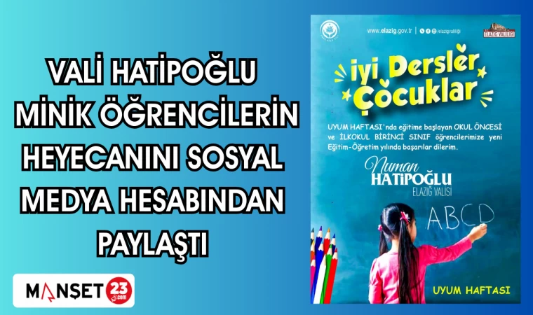 Elazığ Valisi Numan Hatipoğlu, yeni eğitim-öğretim yılının başlamasıyla minik öğrencilerin heyecanını sosyal medya paylaşımıyla paylaştı.