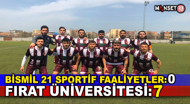 Bismil İlçe Stadı’nda oynanan maçta yedek ağırlıklı bir kadroyla sahada olan Elazığ ekibi sahadan 7-0 gibi farklı bir galibiyetle ayrıldı. Fırat Üniversitesi GSK’ya galibiyeti getiren goller; 6. (penaltı) ve 79. dakikalarda Turan Ekici, 54. dakikada Ahmet Pırlant, 58. dakikada Ahmet Çelik (penaltı), 63. dakikada Muhammed İde, 70. dakikada Taner Çakmak ve 81. dakikada Birkan Doğan’dan geldi.