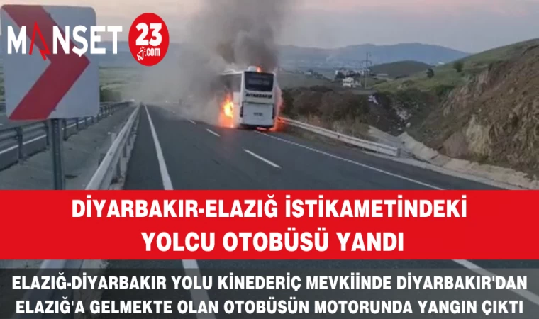 Diyarbakır’dan Elazığ istikametine doğru gelen yolcu otobüsü Elâzığ Kinederiş mevkiinde arızalanan yolcu otobüsünün, motor bölümünden bir anda alevler yükselmeye başlayınca, durumu fark eden şoför otobüsü yolun kenarında durdurarak yolcuları güvenli bir şekilde otobüsten tahliye etti. Alevler kısa sürede tüm otobüsü sararken, durumun bildirilmesi üzerine bölgeye sağlık ekipleri, jandarma ve Elazığ Belediyesi İtfaiye ekipleri sevk edildi. Bölgeye gelen itfaiye ekiplerinin müdahalesi sonucu yangın söndürülürken otobüs kullanılamaz hale geldi.