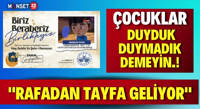 Elazığ Belediyesi tarafından yapılan açıklamada; “Çocuklar duyduk duymadık demeyin. Geleneksel Ramazan etkinliklerimizin , 3️.Günün de Rafadan Tayfa ekibi sahne alacak. Etkinliklerimize tüm halkımız davetlidir” denildi.