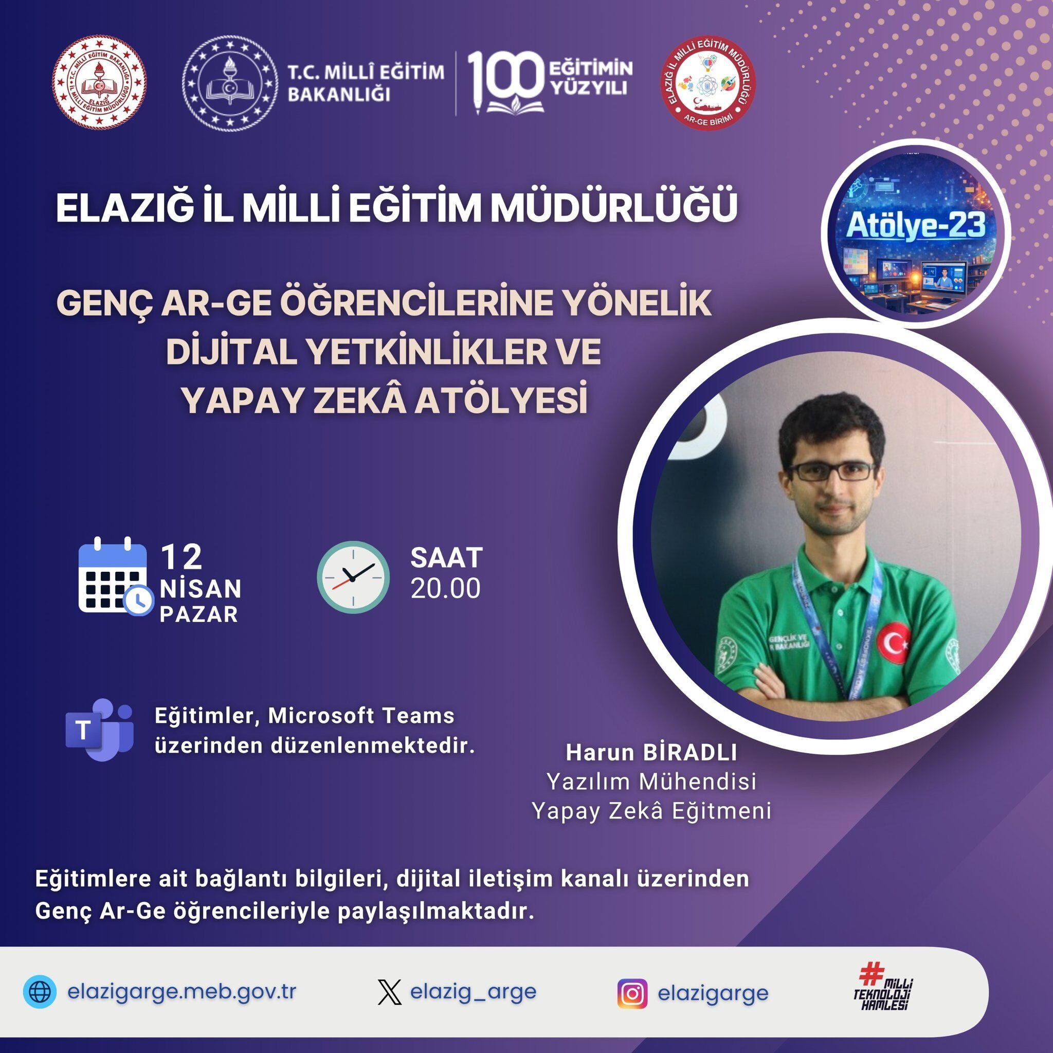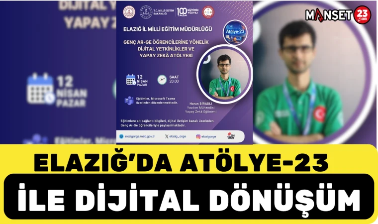 Elazığ İl Milli Eğitim Müdürlüğü tarafından hayata geçirilen Atölye-23 Projesi ile gençlerin dijital becerilerinin geliştirilmesi ve teknolojiye uyumlu bireyler olarak yetiştirilmesi hedefleniyor.