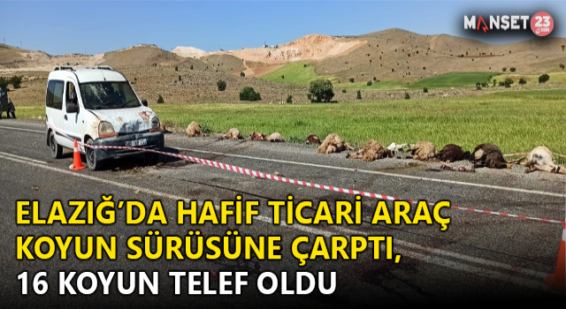Elazığ - Çemişgezek Karayolunda hafif ticari araç, yoldan karşıya geçen koyun sürüsüne çarptı. Kazada sürücü hafif yaralanırken, 16 adet koyun telef oldu.