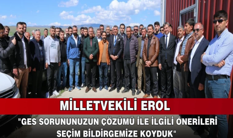 GES projesi ile ilgili önce teşvik edilen daha sonra çıkarılan yönetmelikle mağdur edilen yatırımcıları ziyaret eden Milletvekili Erol, buradaki ilgili kişilerin yaşadıkları sorunları dinledi. Daha önceden de mağdur yatırımcılarla birebir görüşerek onların sorun ve taleplerini ilgili yerlere ileten Milletvekili Erol, yaratılan mağduriyetin giderilmesi ve yatırımcıların doğal hakkı olan konuyu Genel Başkan Yardımcıları Ahmet Akın’a da iletti. Milletvekili Erol, seçimi kazandıkları takdirde sorunun çözümü için bir haftalık süre içerisinde kurulacak olan kabinede Enerji Bakanları Ahmet Akın’ın ilk çözeceği konu alacağını kaydetti.