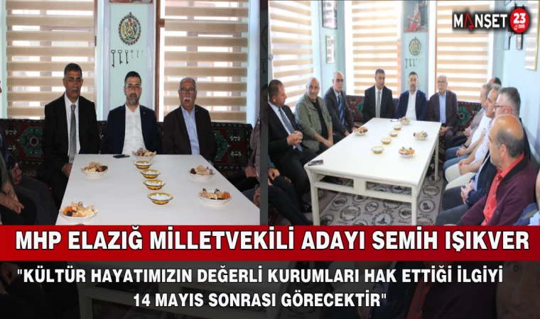 Milliyetçi Hareket Partisi Elazığ 1. Sıra milletvekili adayı Semih Işıkver Elazığ Kültür hayatında önemli bir yeri olan EFTUD’u ziyaret ederek dernek yöneticileriyle bir araya geldi. Işıkver burada yaptığı değerlendirmede, “İlimiz için TBMM çatısı altında yapacağımız hizmetleri 23 ana başlık altında gruplandırdık. Bunlarda biride Elazığ Kültür ve Sanat Obası’dır. Bu proje ile EFTUD gibi bu kültürün yaşamasına büyük katkı veren tüm STK’larımızı çok daha güçlü bir hale getirmeyi planlıyoruz” dedi.