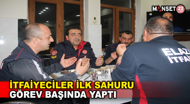 Yangın, sel ve çığ gibi doğal afetlerin yanı sıra trafik kazalarında da görev alan Elazığ Belediyesi itfaiye erleri, ilk sahur için İtfaiye Daire Müdürlüğündeki istasyonda hazırlık yaptı. İstasyonda, 24 saat görev başında bekleyen itfaiyeciler, sahur için mutfağa girerek çay demleyip kahvaltılıkları yemek masasına servis etti. Pidelerin getirilmesinin ardından masaya oturan itfaiye erleri, dua eşliğinde sahurlarını yaptı. Ekipler, sahurun ardından yine mesailerine kaldıkları yerden devam etti.