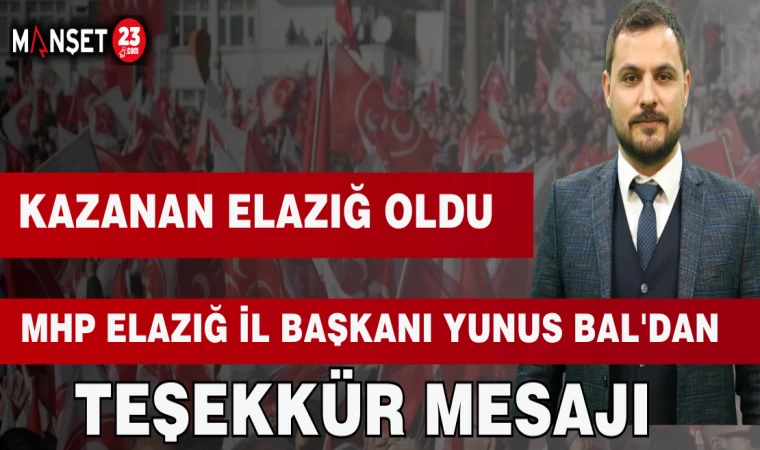 MHP Elazığ İl Başkanı Yunus Bal, teşekkür mesajı yayınladı