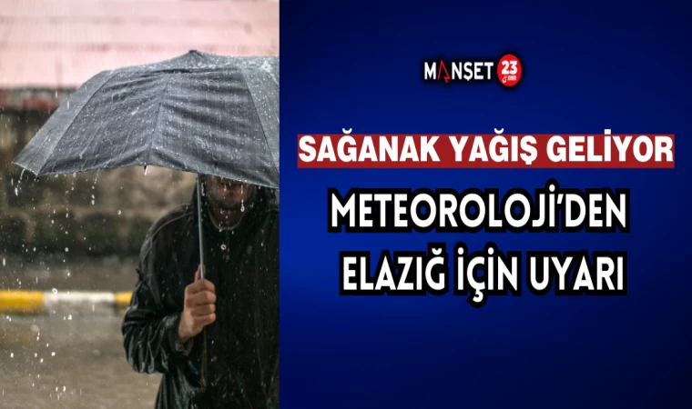 Meteoroloji tarafından yapılan açıklamada, “Elazığ çevrelerinde Yerel Kuvvetli (21-50 kg/m² ) sağanak ve gök gürültülü sağanak yağışlı olması bekleniyor. Ani Sel - Su Baskını - Sel – Yıldırım - Ulaşımda Aksamalar- Heyelan- Yağış anında kuvvetli rüzgar (Baca gazı zehirlenmesi) oluşması muhtemel riskler arasında yer alıyor. Oluşması muhtemel risklere karşı tedbirli ve dikkatli olunması gerekmektedir” denildi.