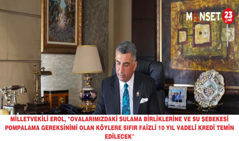 Milletvekili Erol, "Ovalarımızdaki sulama birliklerine ve su şebekesi pompalama gereksinimi olan köylere sıfır faizli 10 yıl vadeli kredi temin edilecek"
