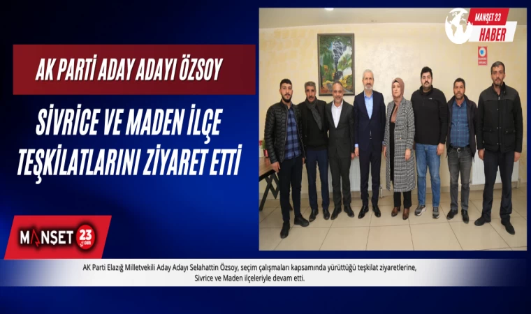 AK Parti Elazığ Milletvekili Aday Adayı Selahattin Özsoy, seçim çalışmaları kapsamında yürüttüğü teşkilat ziyaretlerine, Sivrice ve Maden ilçeleriyle devam etti.
